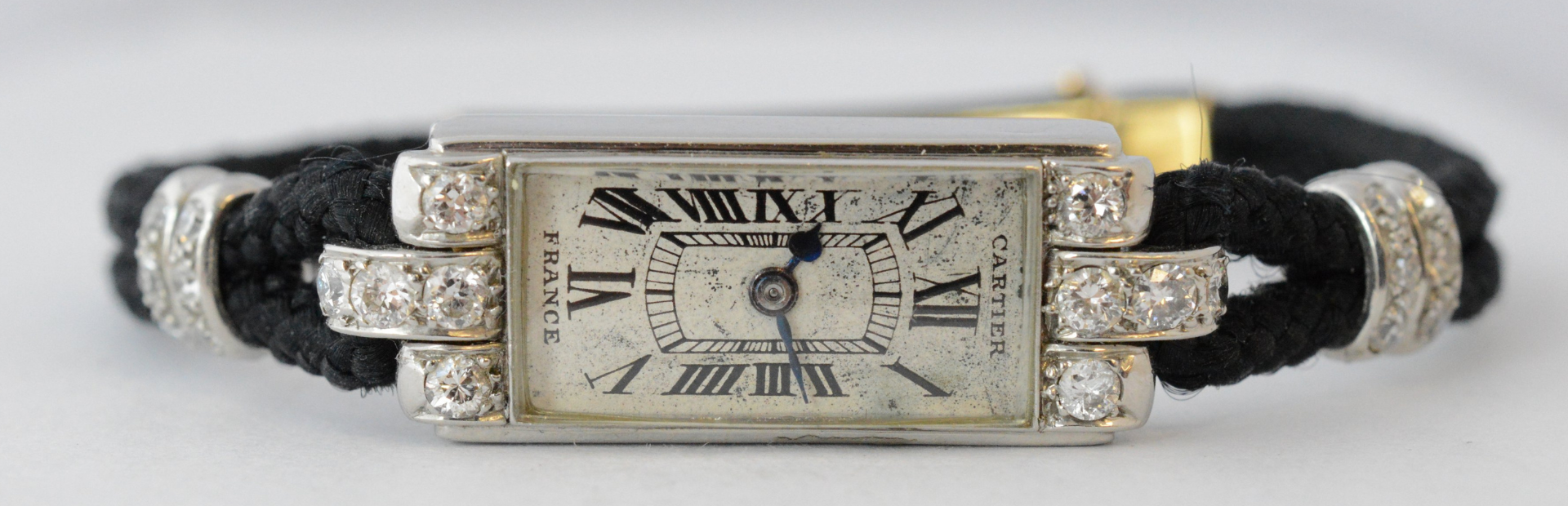 Eine seltene Cartier-Uhr aus der Zeit um 1925, besetzt mit 22 Diamanten. Es wurde 2017 auf Catawiki versteigert