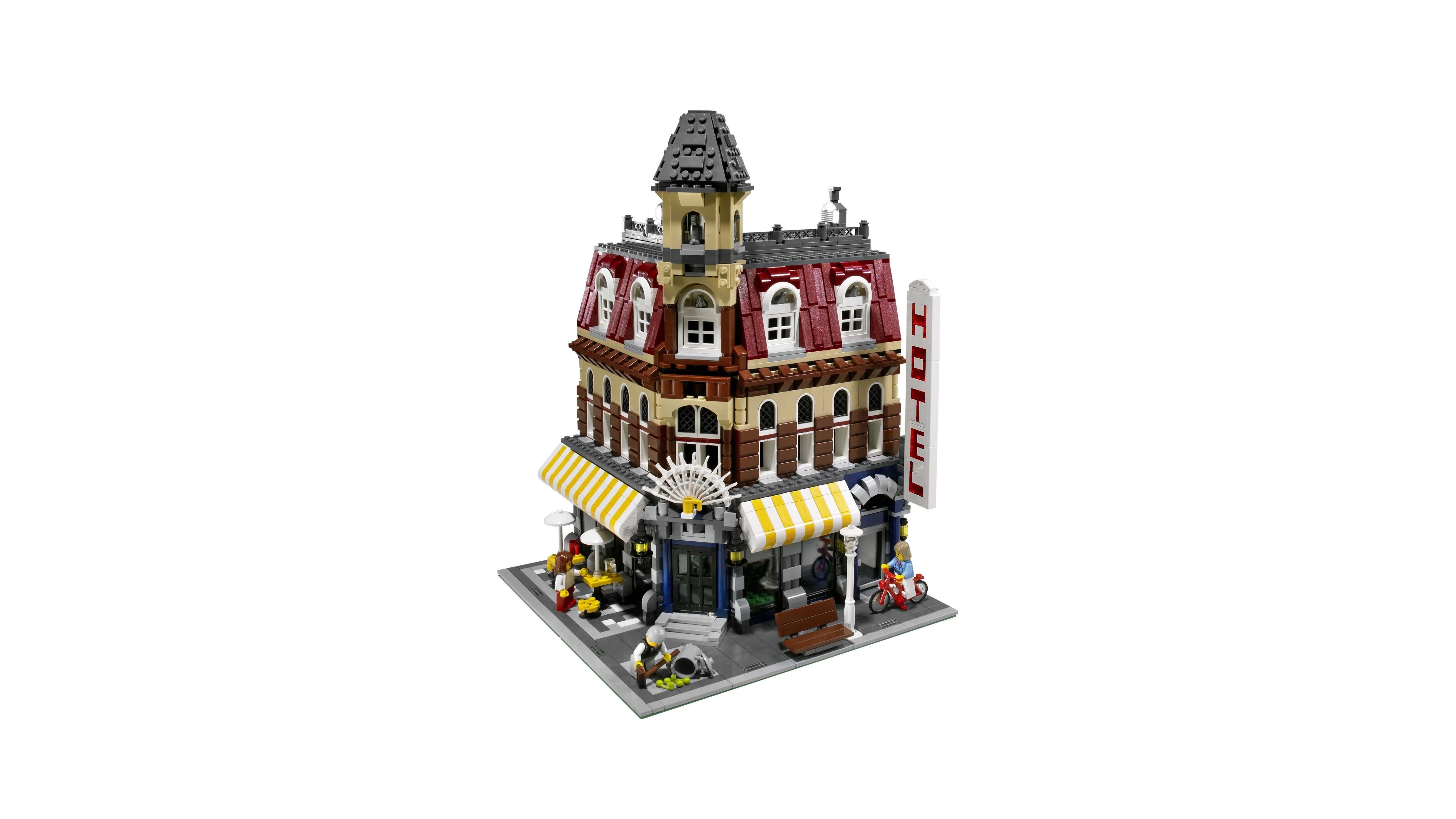 Lego’s “Café Corner” hat 2.056 Teile und Sie können es für rund 1.500€ erwerben. Das Gebäude umfasst drei Etagen, es hat einen Mosaik-Fußboden und ein Fahrrad.