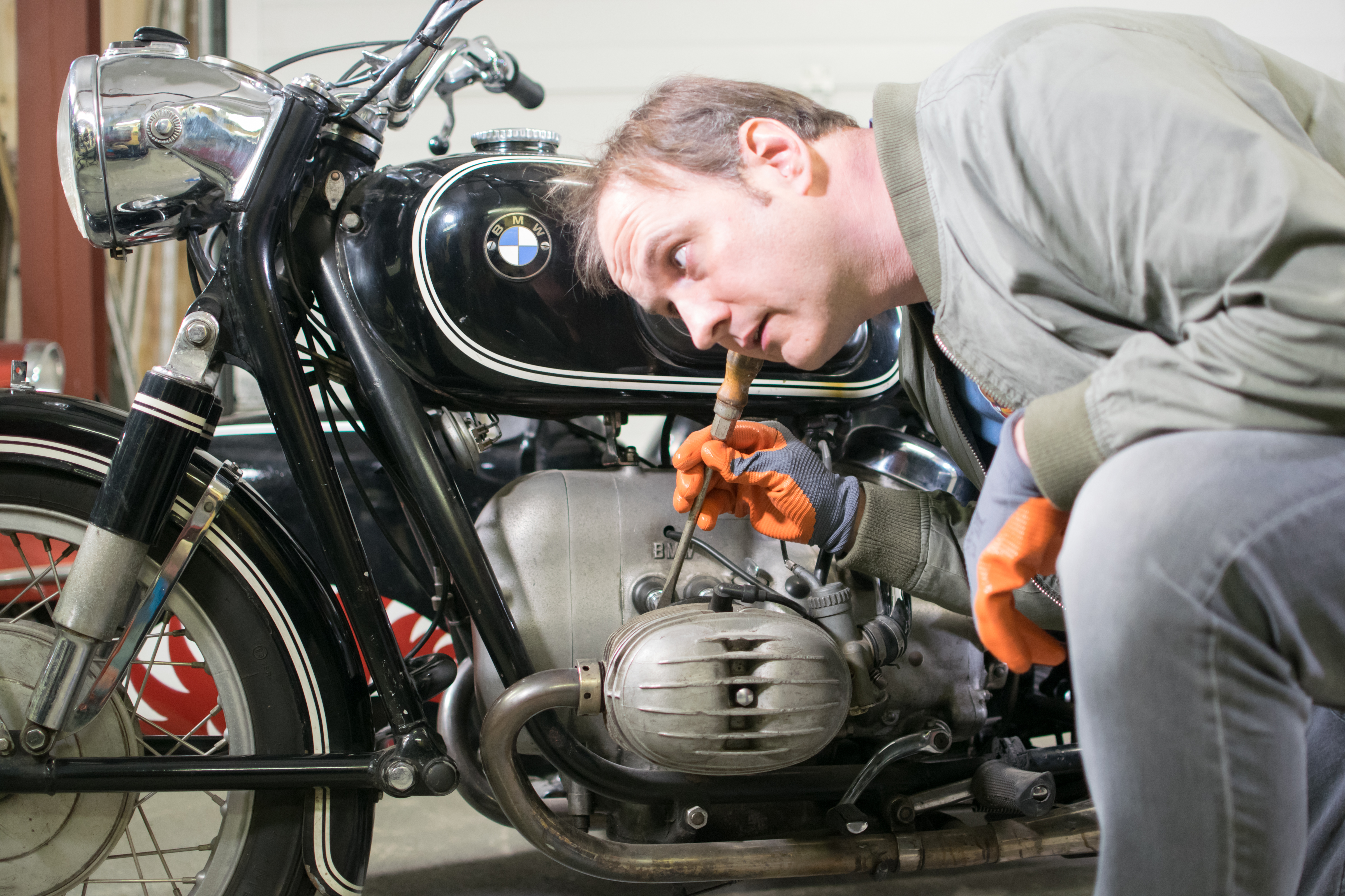 oficina de motos. "Uma dica clássica que o meu avô partilhou comigo",